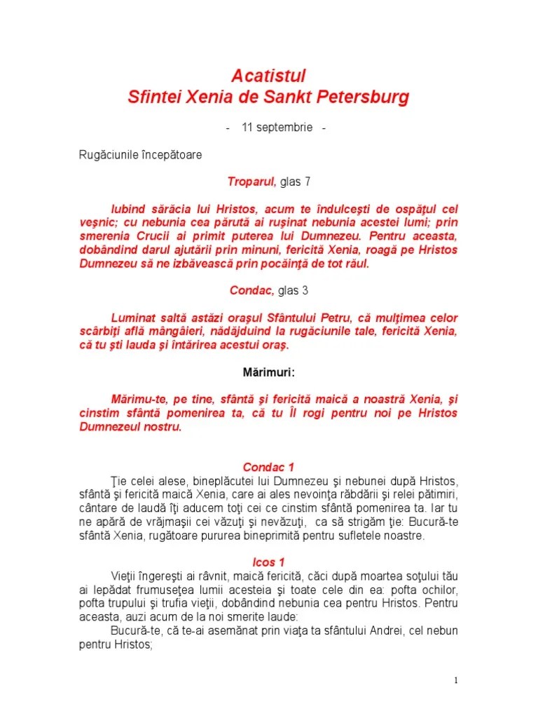 Acatistul sfintei xenia din sankt petersburg. Jul 29, 2013 · acatistier, colecție de acatiste în format pdf descarcă acatistiereul în format pdf din cuprins: Acatistul sfintei xenia din sankt petersburg. Apr 11, 2014 · acatistul sfintei xenia, cea nebuna pentru hristos. Apr 11, 2014 · acatistul sfintei xenia din sankt petesburg. De asemenea, părintele ilarion argatu, marele duhovnic de la cernica, îi sfătuia pe tinerii care nu se puteau căsători să citească, timp de 40 de zile, în fiecare seară acatistul sfinților părinți ioachim și ana și în fiecare dimineață acatistul sfântului nicolae.. Jul 29, 2013 · acatistier, colecție de acatiste în format pdf descarcă acatistiereul în format pdf din cuprins: